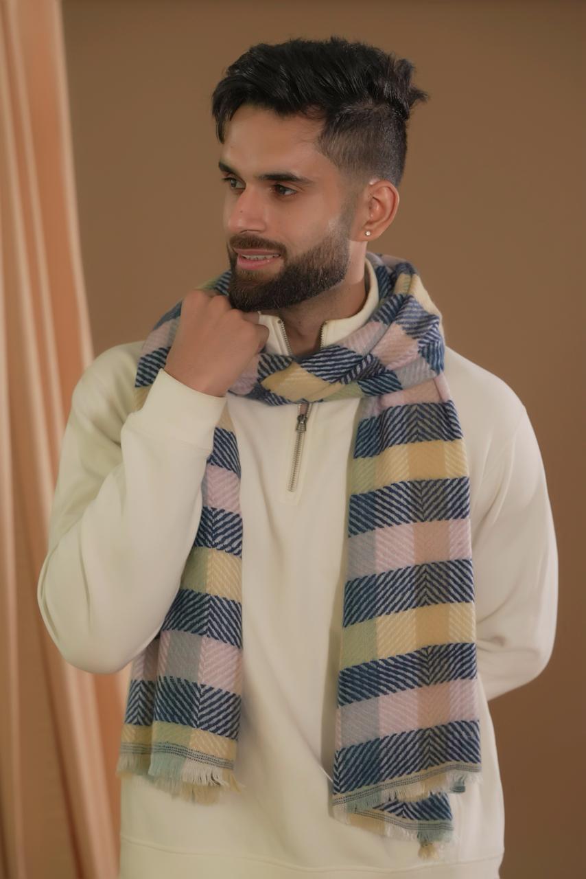 Wrap yourself in timeless elegance with the Aurora Checks Woolen Muffler from Twill by Muskan. Crafted with soft, breathable wool, this muffler combines warmth with effortless style. Its pastel check pattern—featuring shades of navy, beige, and blush—adds a modern twist to a classic design, making it versatile enough for casual outings or sophisticated evenings. Lightweight yet cozy, it drapes beautifully over any outfit, offering both comfort and charm.